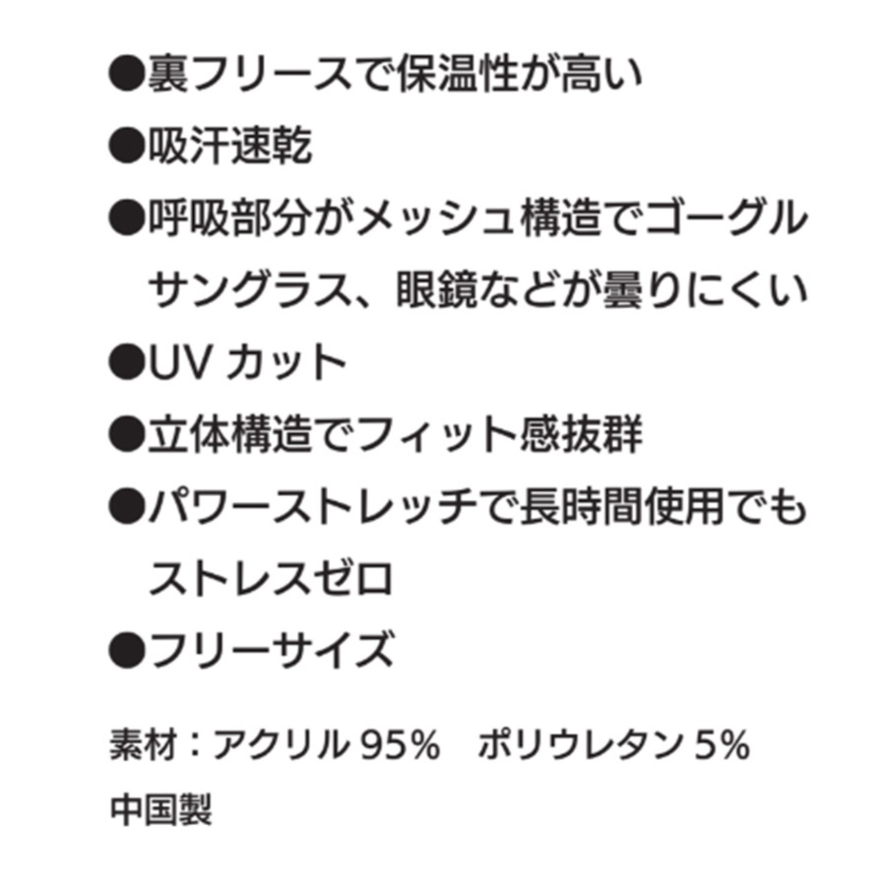 立体構造により、フィット感が抜群で、スノーボードやウィンタースポーツ時にもずれにくく、動作を妨げません。