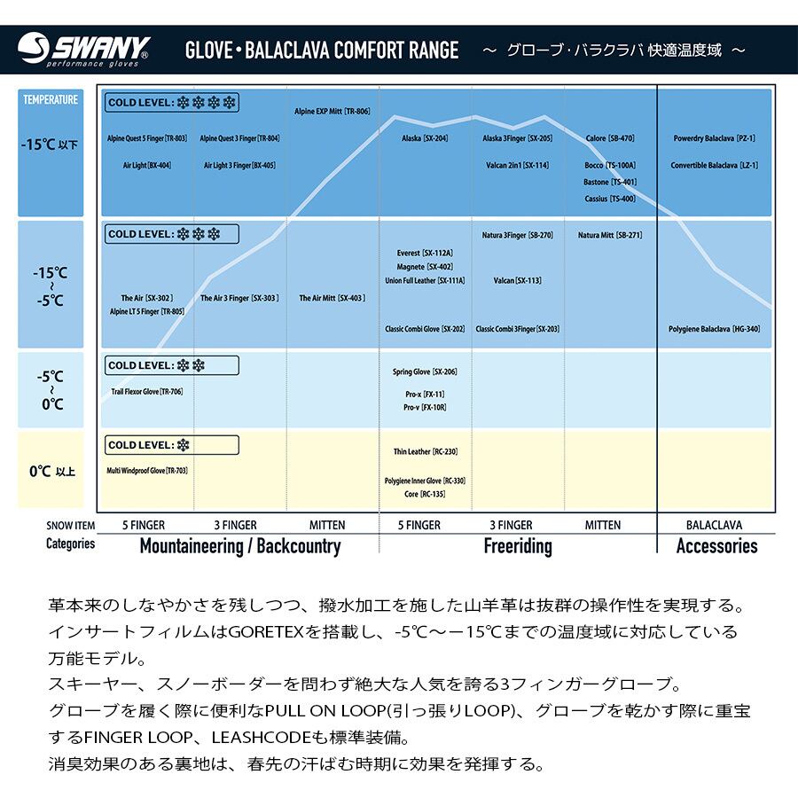 SX-114「Valcan 2in1」は、SWANYの人気モデルSX-113「Valcan」のインナー付きモデルです。インナーを使用することで、Valcanよりも更に寒い状況下での使用が可能です。インナーグローブ付きモデルですが、握りやすさも兼ね備えています。指先の冷えに悩まされている方、グリップ感よりも暖かさを重視される方、極寒地でのアクティビティを快適に楽しみたい方にはおすすめです。