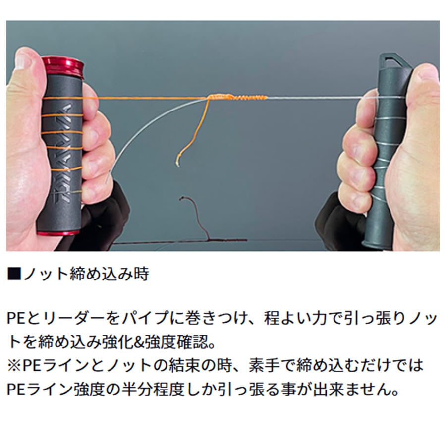 ノット結束の仕上げに締め込んで強度をアップし、すっぽ抜けを防止するツール。