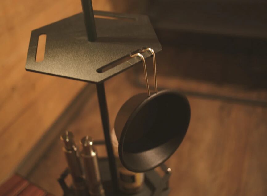 2WAYSTANDをより便利に拡張できるSTAND PLATE。スタンドのジョイント部分にプレートを挟み、小物を置くことが可能。上下2段にセット可能で上段はシェラカップやちょっとした小物を吊るせるスリットが入っています。下段には落下防止の枠をセットし、安心して小物を置くことが出来ます。