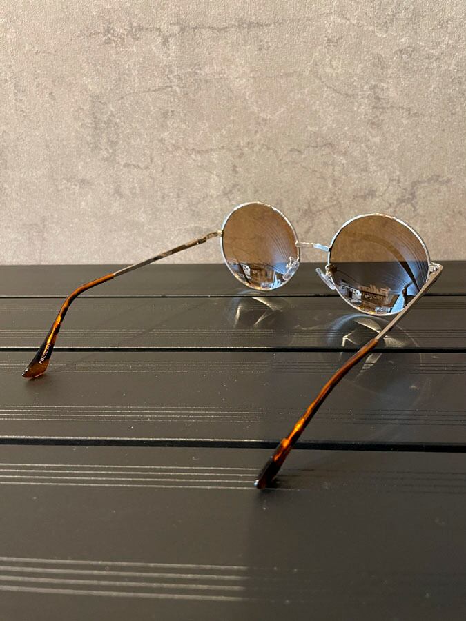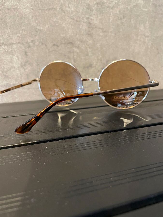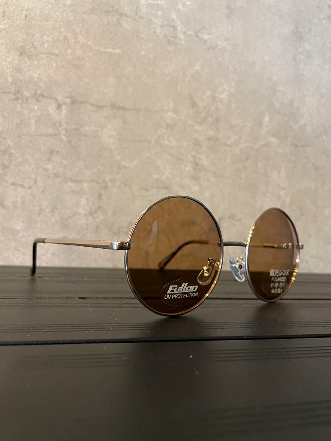 ゴールドのフレームにやや大きめのラウンド型。