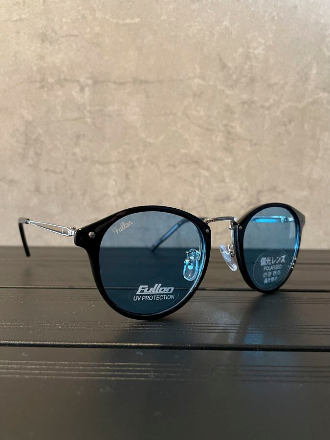 シャープな印象のフェイスにメタルテンプルの組み合わせ。ライトブルー偏光レンズをセット