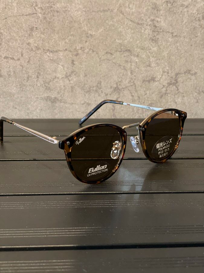 シャープな印象のフェイスにメタルテンプルの組み合わせ。ライトブラウン偏光レンズをセット