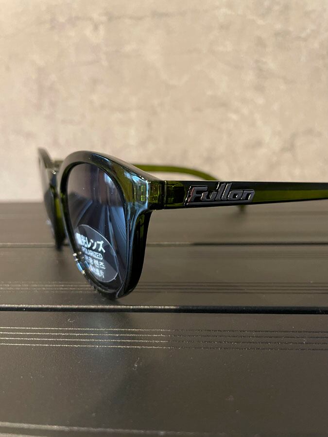 透明感のあるオリーブグリーンのフレームにスモークグラデーション偏光レンズをセット